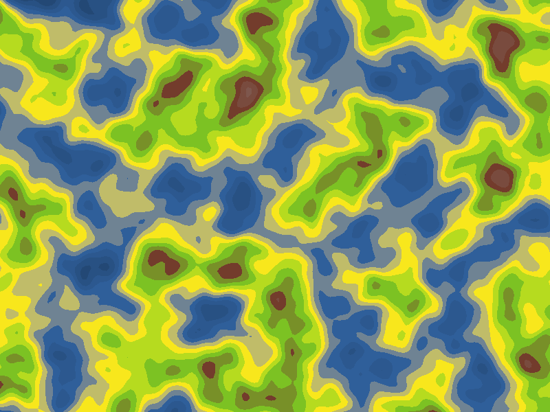 In the examples of the previous section, the scalar field was only used to build shapes from a contour line. When building a terrain, the field values represent the height, so all the field values are needed to give a graphical representation.