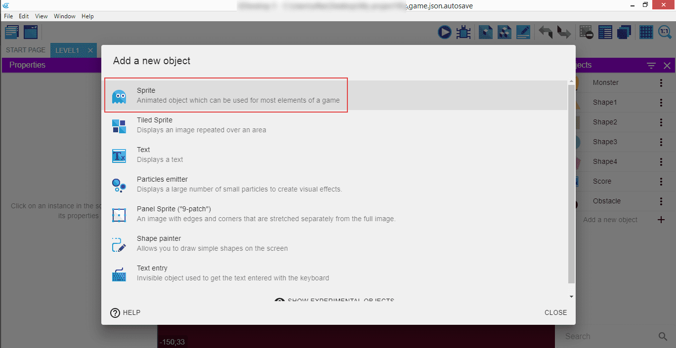 Click the "Level1" tab, and "Add a new object".