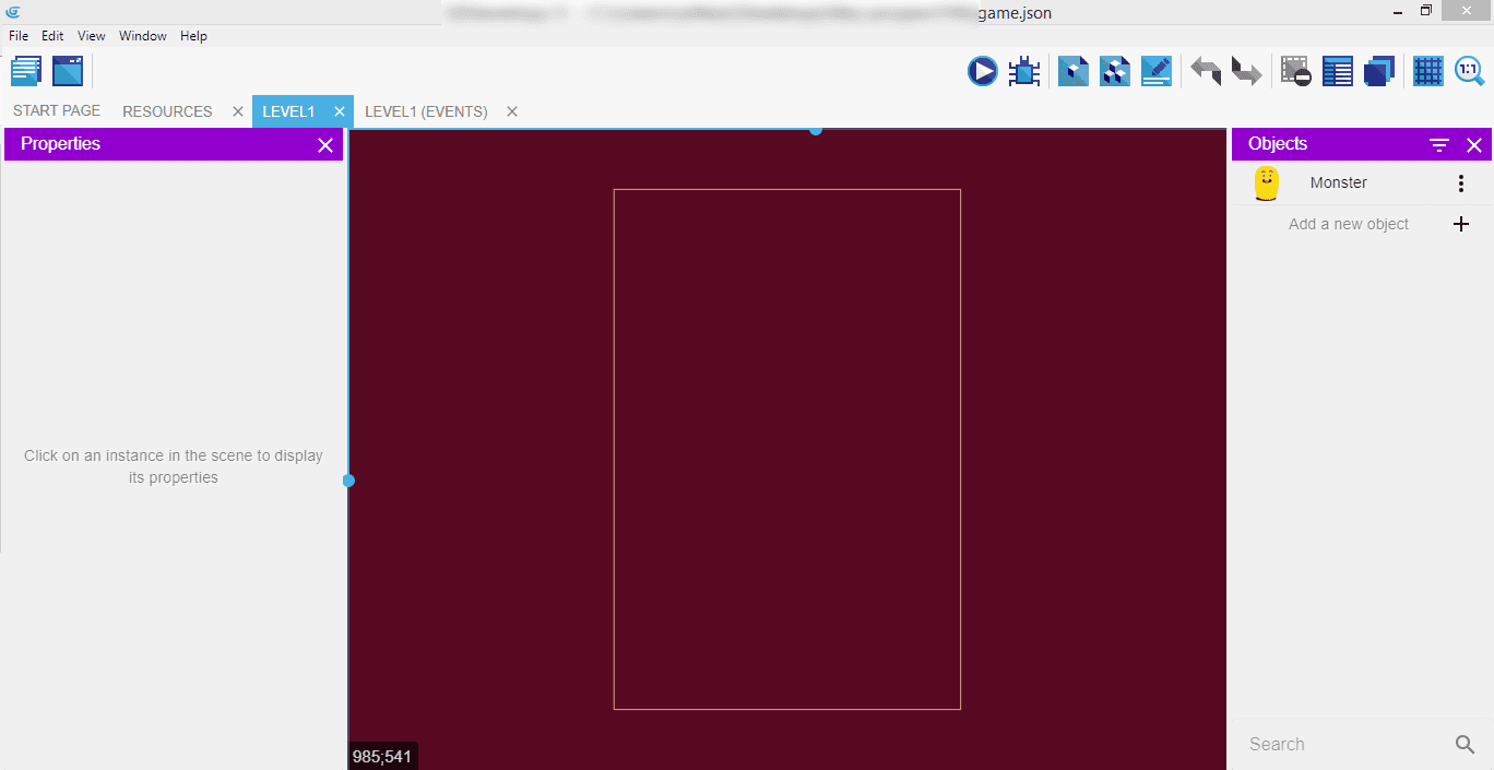 Another popup will appear, but now with the options to customize our new object. We will call him "Monster", and he will be our main character in the game: collecting items and being cute at the same time.