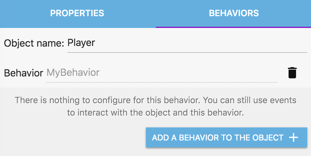 Making custom behaviors for your game objects might seem at the beginning more complicated than making events directly in the events sheet. Behaviors are more constrained and need you to think more carefully about how your object works and what actions/conditions should the behavior expose. But custom behaviors are also a very powerful tool, allowing you to encapsulate your logic inside your objects, and keep the events sheet of your scene as minimal as possible.
