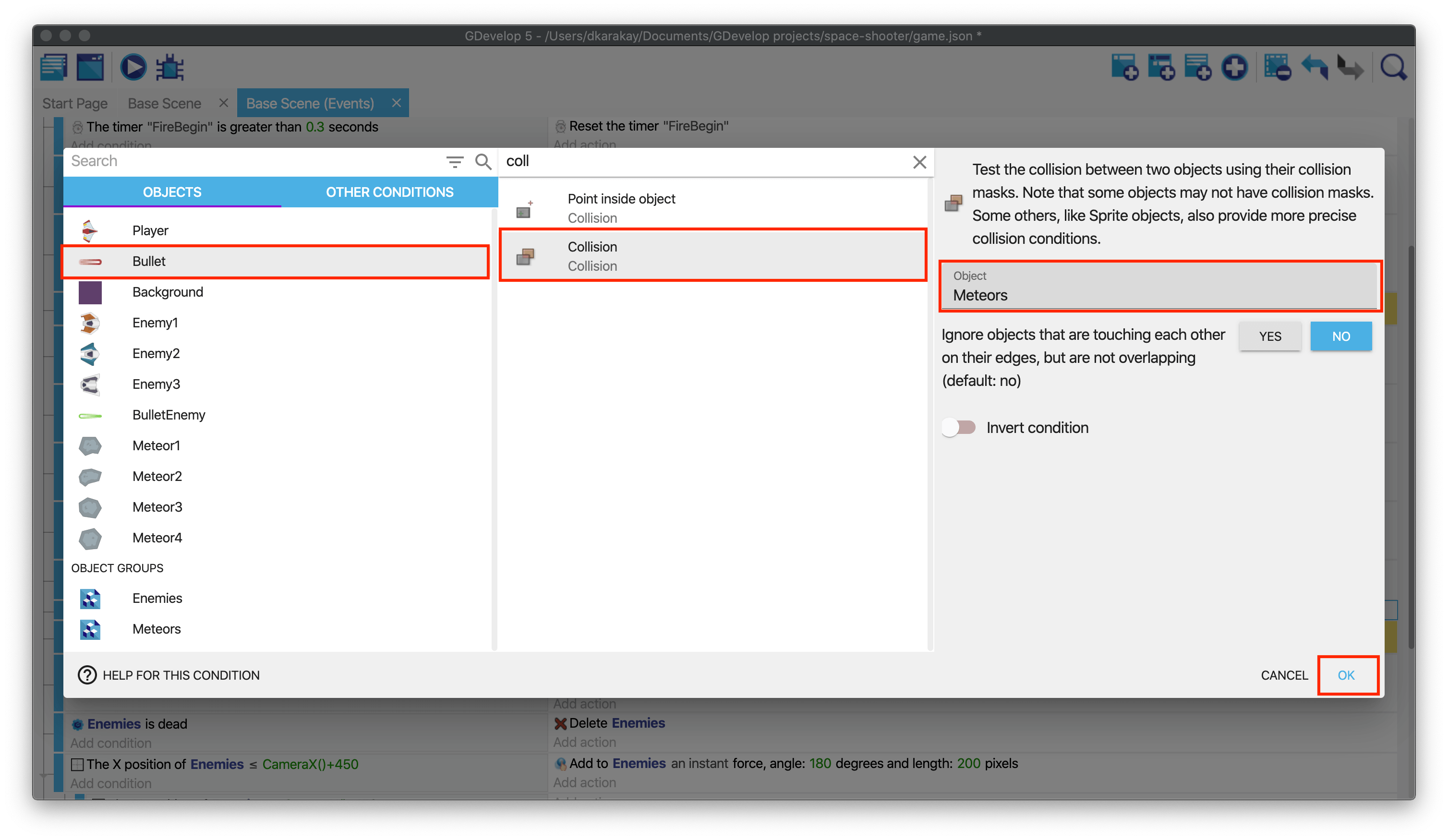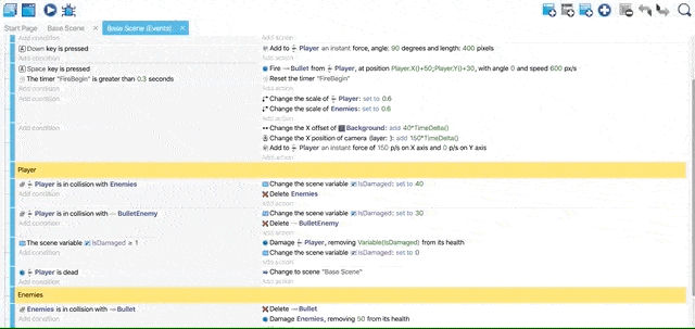Then, add an action to delete "Bullet" objects. In the end, your events should look like below.